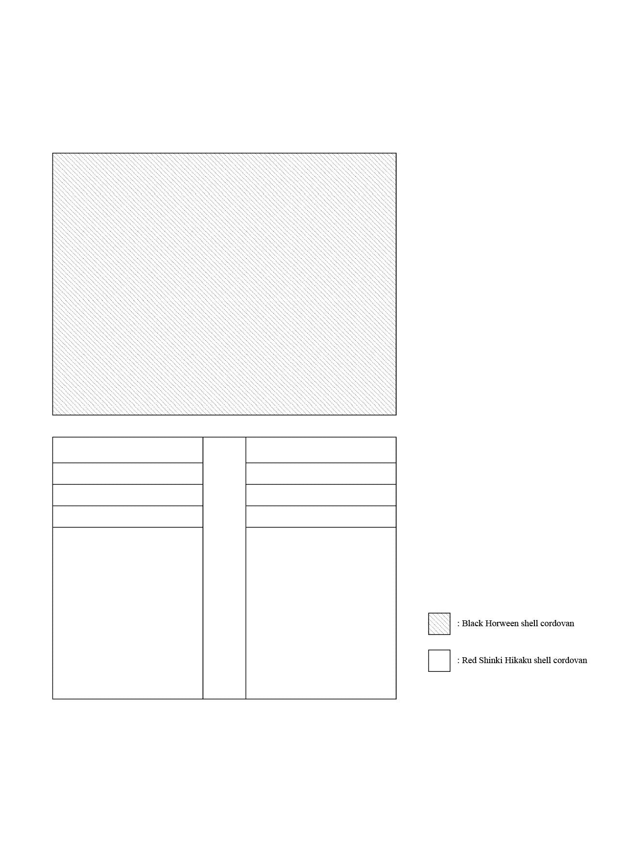 Black Horween shell cordovan exterior, Red Shinki Hikaku shell cordovan interior.