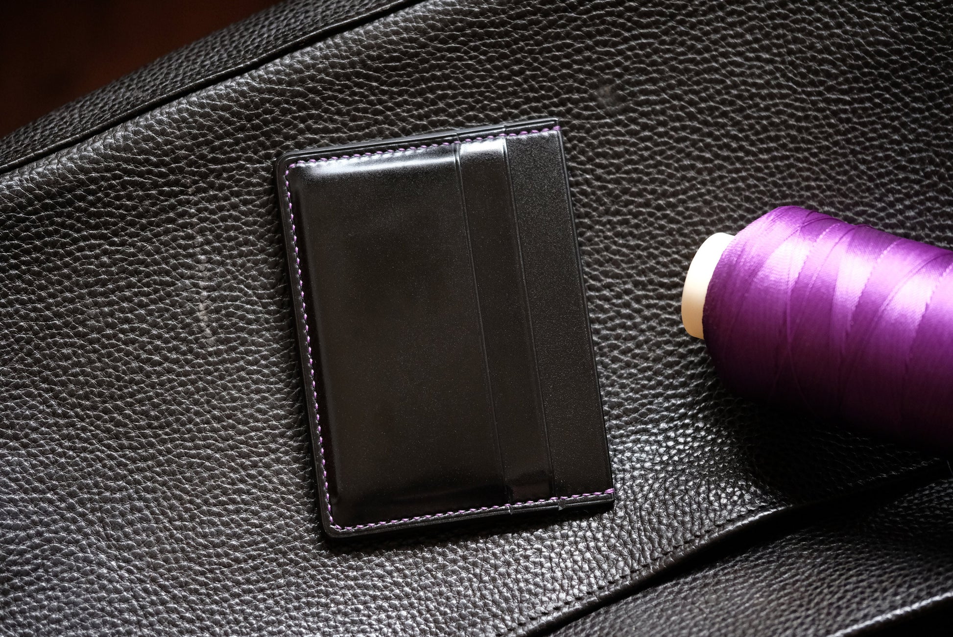 Card Wallet D01 - Japanese Shinki Hikaku shell - cordovan - Slim Wallet - Black - Card Holder / Made to Order